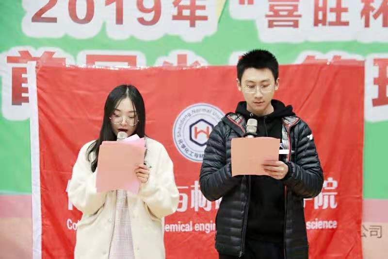 为增强同学们的凝聚力和团队协作能力,营造和谐团结的氛围,展现化学院积极昂扬的精神风貌,12月17日晚,化学化工与材料科学学院于千佛山校区体育馆成功举办“2019,执梦同行”素质拓展活动。本次活动由化学院团员自我管理委员会与学生会主办,团员自我管理委员会与学生会全体成员积极响应并参与其中。陈嘉欣、张峻铭担任活动主持人。