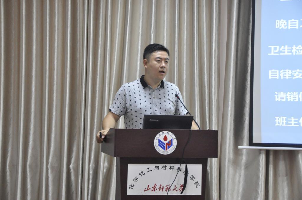 首先,学院给各位新生家长播放了介绍学校发展建设情况和学院学生工作介绍的两个视频短片,展现了山东师范大学从创办至今的总体发展概况及山师学子的精神风貌,让家长初步了解了山师和化学院。随后,刘金凯上台致辞,代表学院向各位新生的家长表示祝贺和欢迎,并向家长介绍了学院的大体情况以及此次家长会的流程。陈蓁蓁围绕学院机构设置、办学层次、师资队伍、科学研究、人才培养和教风学风等方面向家长详细介绍了学院教学和科研的基本情况。刘金凯着重讲述了学生今后可能比较关注的专业分流等问题。孙南则从学院的工作理念、育人模式、学生管理相关制度、学风建设教育以及就业服务指导等方面重点介绍了学生工作情况,通过一些优秀学生的典型事例让家长充分了解到学生未来的发展情况。最后,刘金凯对整个家长会做出总结。他指出,大学是人生成长的黄金时期,大学生依然需要努力学习,奋发图强。他要求家长不要放松对学生的督促,作为家长应继续关注孩子的学习、成长和心理健康。精彩的言论引发了家长的共鸣,新生家长见面会在阵阵掌声中落下帷幕。会后还专门对部分家长的问题进行了解答,在家长中产生了积极反响,在交流中,家长对此次学院的迎新工作做出了较高评价。