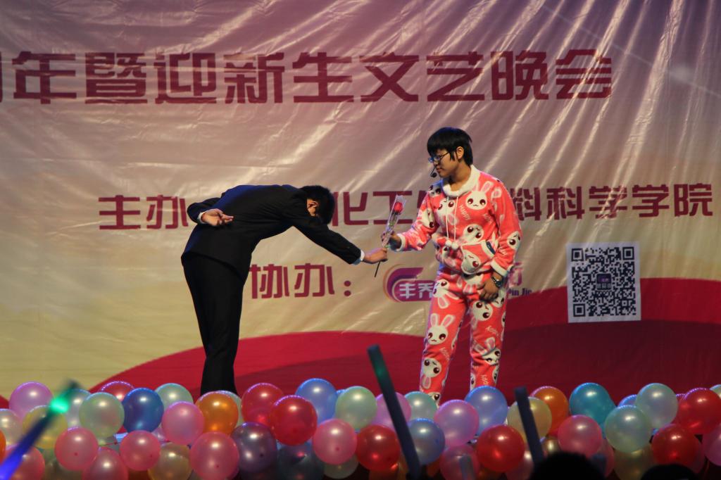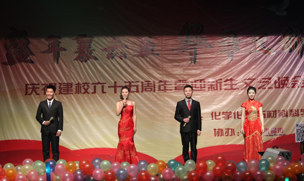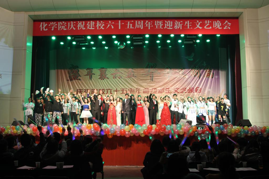 为庆祝学校建校六十五周年,喜迎2015级新同学,11月13日晚,化学化工与材料科学学院在千佛山校区大礼堂举办“盛年襄六五,华章又新篇”——庆祝建校六十五周年暨迎新生文艺晚会。校长唐波,纪委书记初乐娟,校长办公室、科技处、学生工作部、统战部、文学院等单位有关同志,以及化学院负责同志、部分师生一同观看了演出。