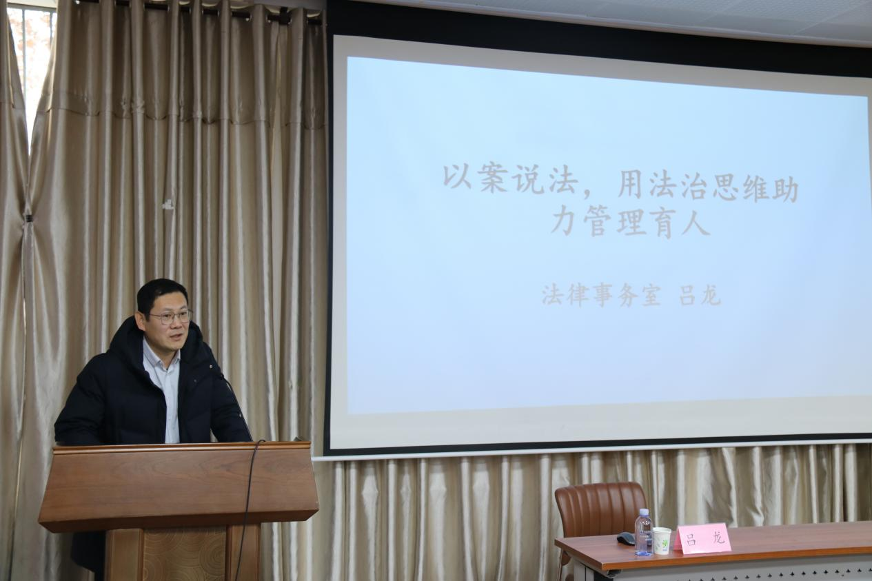 为更好的促进学生高质量就业,12月27日上午,化学化工与材料科学学院于一号教学楼1201报告厅举办“法”护人生,筑梦职场——普法青春行系列活动,此次活动邀请校长办公室法律事务室副主任吕龙主讲,学院毕业生积极参与活动。