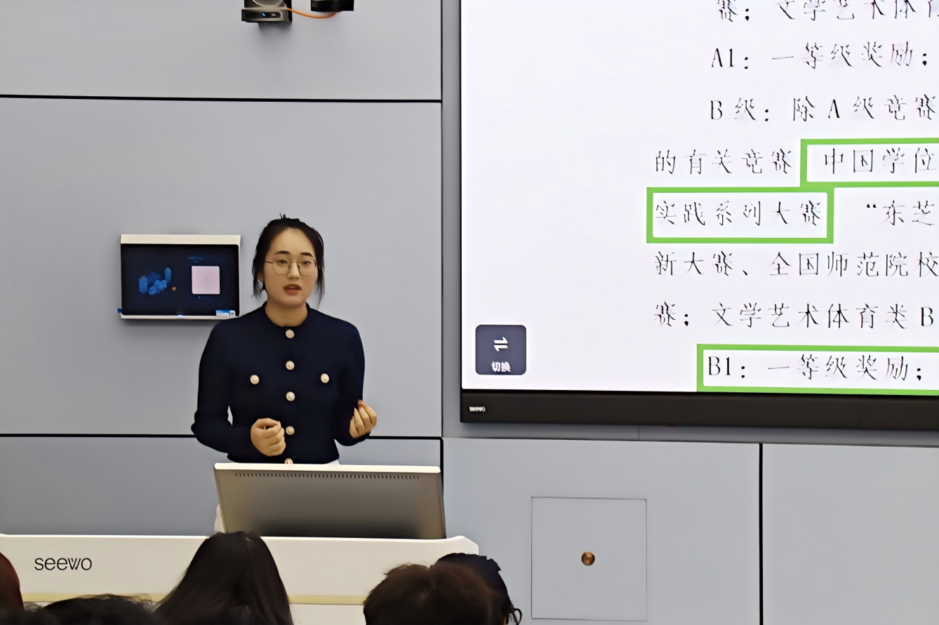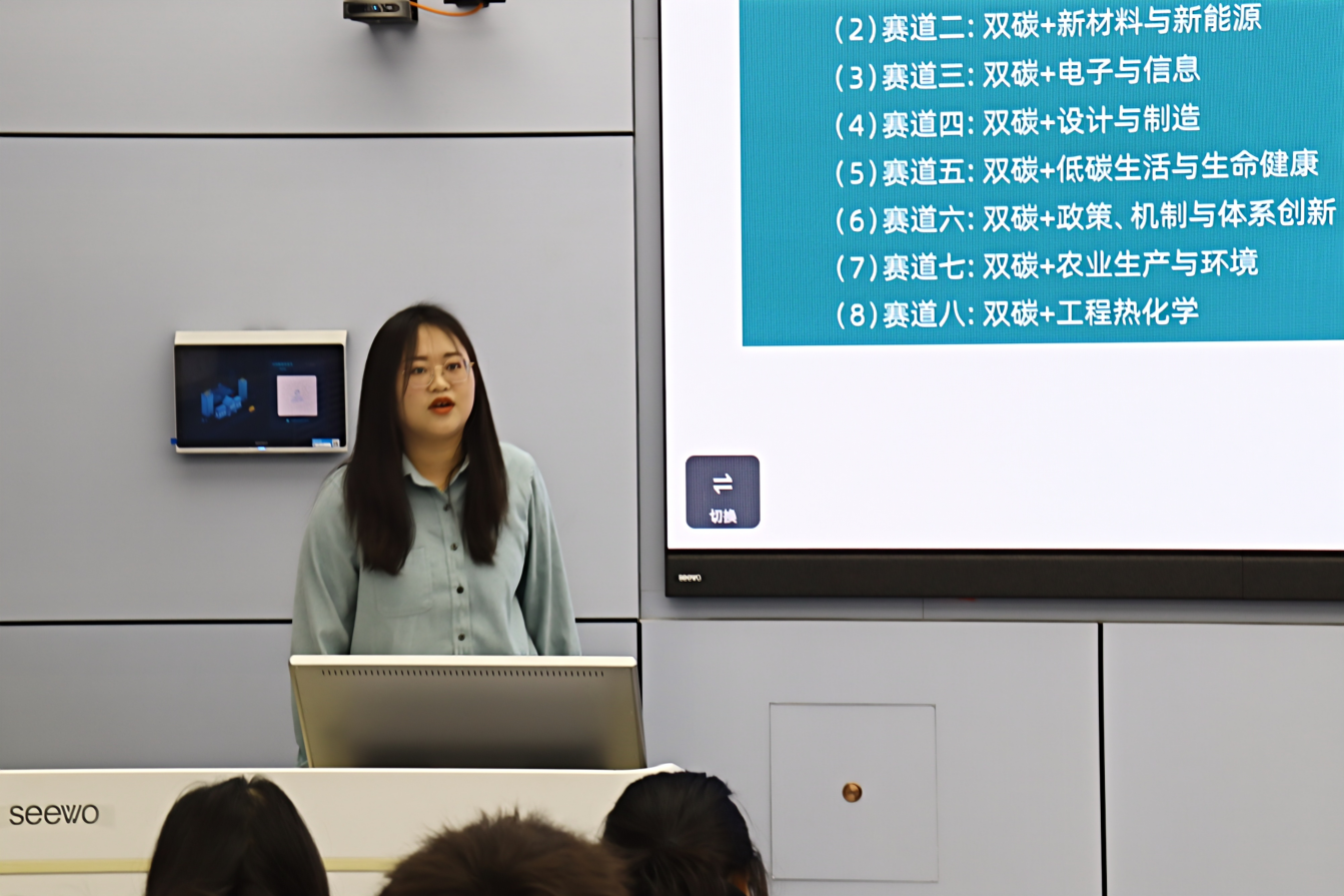 随后,杨圆圆围绕自身参加中国研究生“双碳”创新与创意大赛和中国研究生能源装备创新设计大赛的经历,分享了参赛经验与心得体会。她从自身成长变化入手,讲述了参赛带来的收获与提升,并基于此介绍参加竞赛的益处及优势。接着,她详细介绍了通过公众号、官方网站及学院群等获取赛事信息的途径,分享了撰写参赛计划书的步骤,从“明确目标”、“做好前期调研”、“清晰呈现内容”、“检查与修改”四个方面帮助同学们了解如何撰写计划书。最后,杨圆圆结合具体案例,鼓励研究生注重团队合作,基于科研成果的理论基础拓宽学术视野。