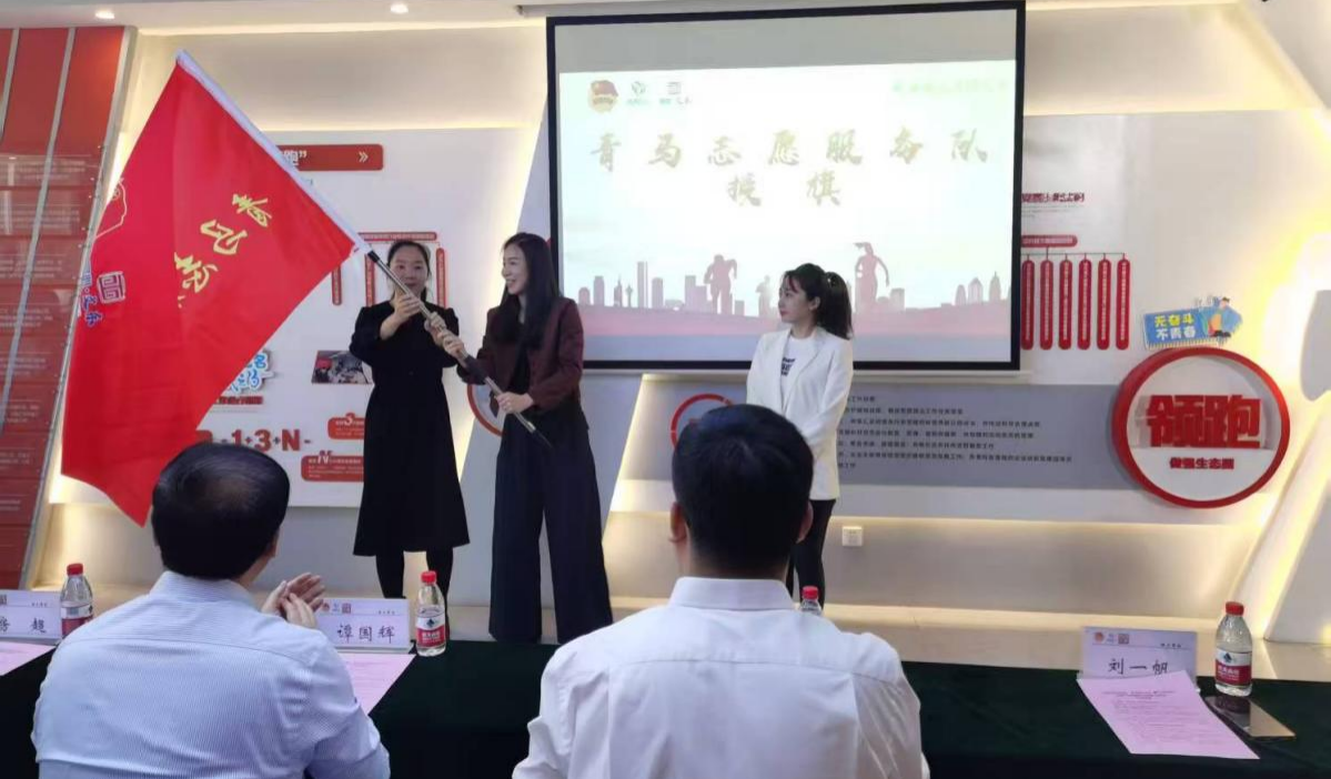 刘一帆为学院团委、恒大商圈团支部青马志愿服务队共同授旗。这是学院团委与文恒社区前期良好合作基础上一次创新探索,这将为学院师生与文恒社区、商圈搭建交流合作的桥梁,开启志愿服务新模式。