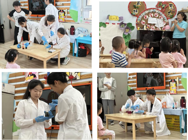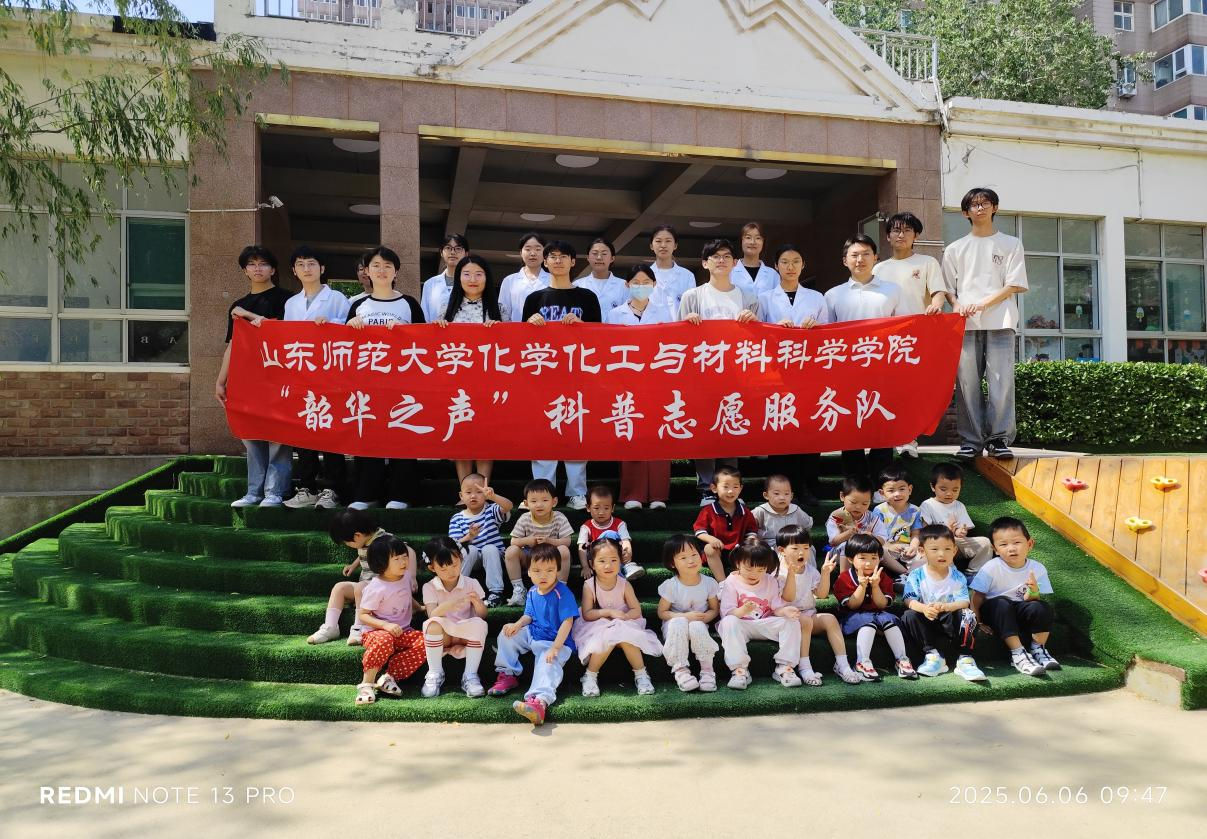 6月6日,学院韶华之声科普志愿服务队走进山东师范大学幼儿园,以“茶水变墨水”、“魔壶实验”、“大象牙膏”、“化学拉面”四大趣味化学实验为载体,为萌娃们打造科学启蒙盛宴。