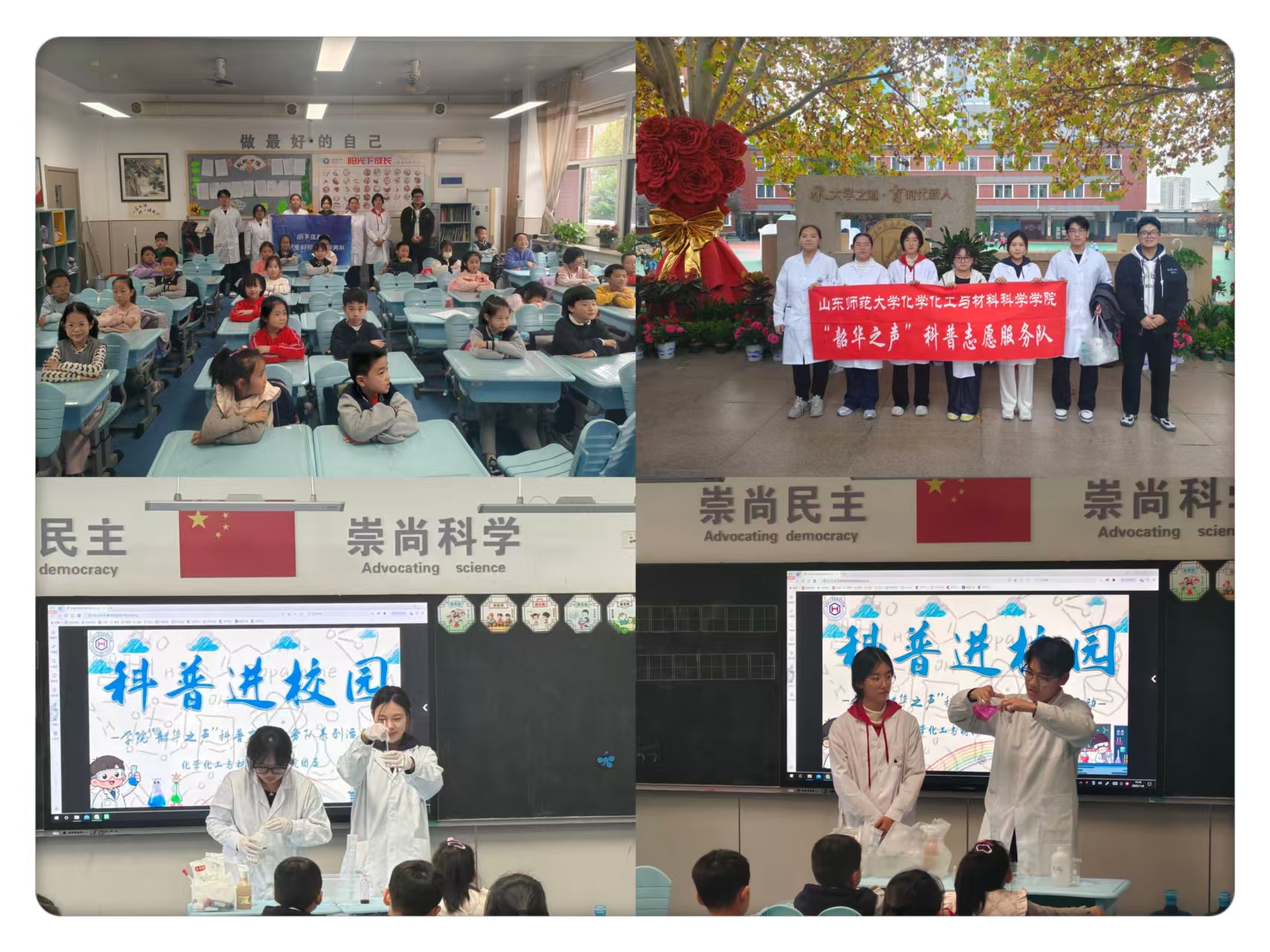 在教育部“强化中小学科学教育”的号召下,一场由山东师范大学化学化工与材料科学学院的志愿者们在山东师范大学附属小学开展了一场主题为“探秘科学世界,点亮童年梦想”的科普活动,他们正用趣味实验和健康科普搭建起课本与现实的桥梁。