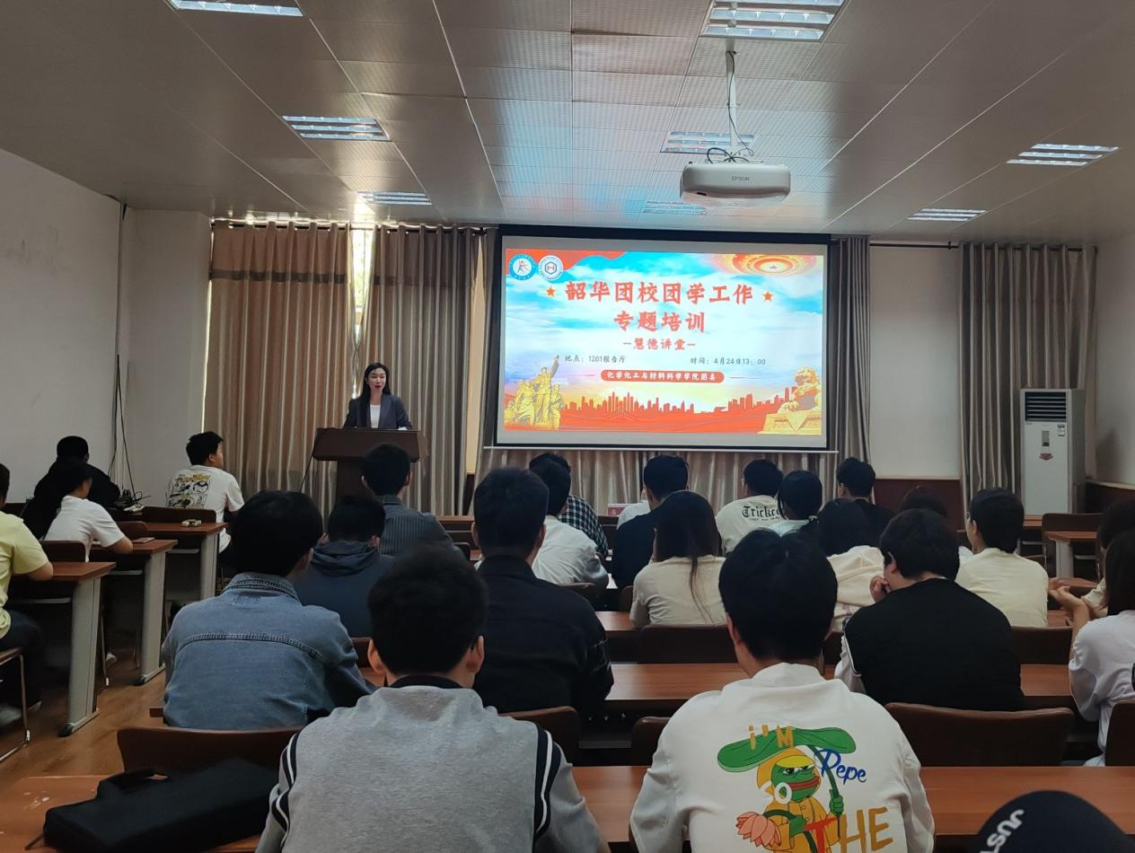 4月24日中午,化学化工与材料科学学院韶华团校于千佛山校区1201报告厅举行“慧德讲堂”团学工作专题培训会,本次会议由化学化工与材料科学学院团委书记房超主讲,团校全体团干部、入党积极分子与会。