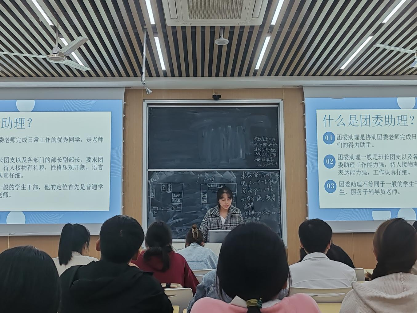 10月25日晚19点,由化学化工与材料科学学院韶华团校举办的团务实训交流培训会在教学一楼1104教室开展。本次大会由其他学生组织团务中心部门负责人程佳琳及李文雪主讲,全体团委助理参会。