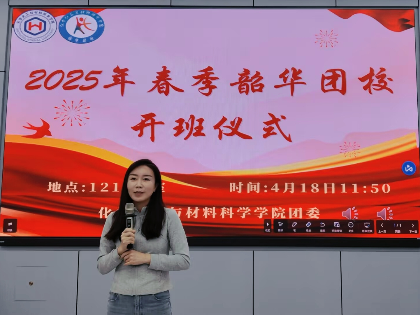 4月18日中午,化学化工与材料科学学院2025年春季韶华团校开班仪式在千佛山校区教学一楼1215教室举行。化学化工与材料科学学院团委书记、2022级辅导员房超出席,开班仪式由团务中心李文雪主持,团校全体学员参会。