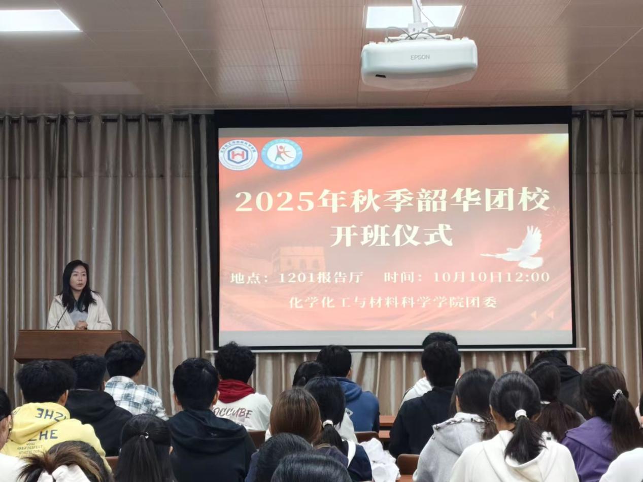 10月10日中午,化学化工与材料科学学院2025年秋季韶华团校开班仪式在千佛山校区教学一楼1201报告厅举行。化学化工与材料科学学院团委书记房超出席,开班仪式由团务中心王培虎主持,团校全体学员参会。