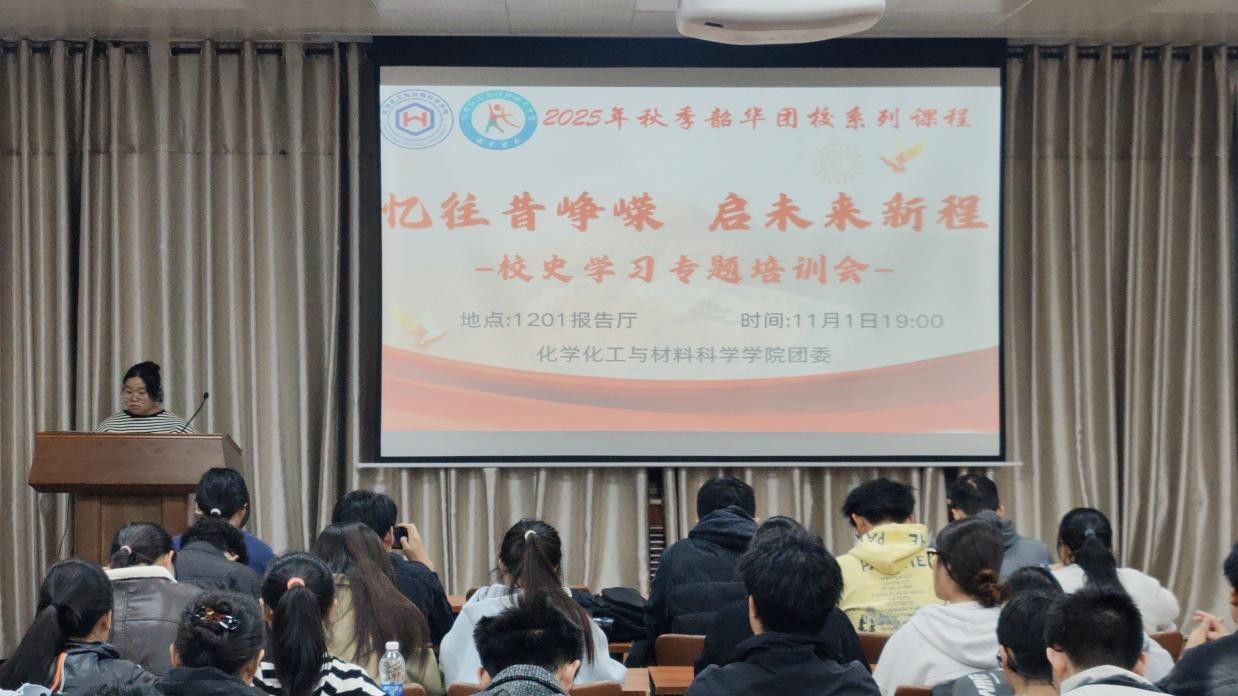 11月1日晚7点,化学化工与材料科学学院韶华团校校史学习分享交流会在千佛山校区教学一楼1201报告厅顺利举行。本次培训会由“韶华之声”宣讲团成员郭宇航担任主讲人,团务中心王培虎主持,团校全体学员全程参会。